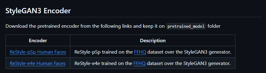 : StyleGAN3용 ReStyle 모델(FFHQ 기반) restyle_pSp_ffhq.pt , restyle_e4e_ffhq.pt 다운로드