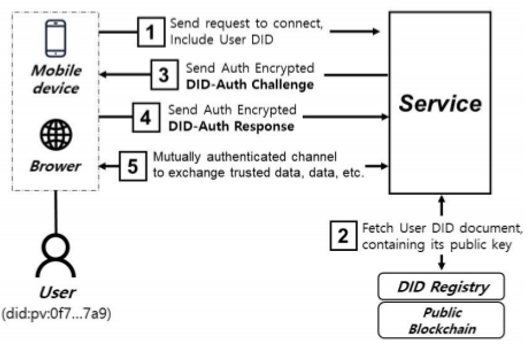 2. 서비스는 사용자 DID를 이용해 레지스트리에서 사용자 공개키를 통해 신원 인증에 필요한