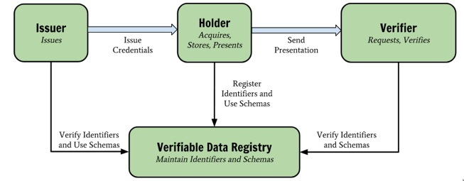 : 중앙화된 신원 제공자, 레지스트리, 인증 기관 등으로부터 독립되어 검증 가능한 분산 디지털 신원 기술